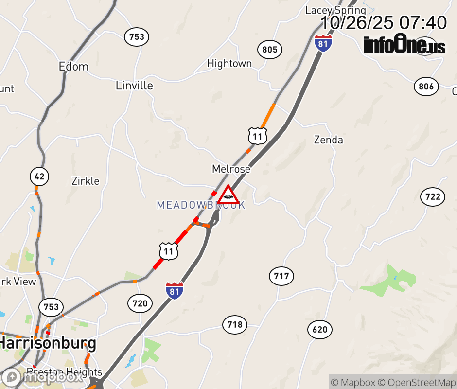 On I-81 at mile marker 251.9 in the County of Rockingham, motorists can expect delays due to a vehicle crash. The north right lane and right shoulder are closed. Updated: Sun 10/26/25 7:40 AM EDT ![]() |