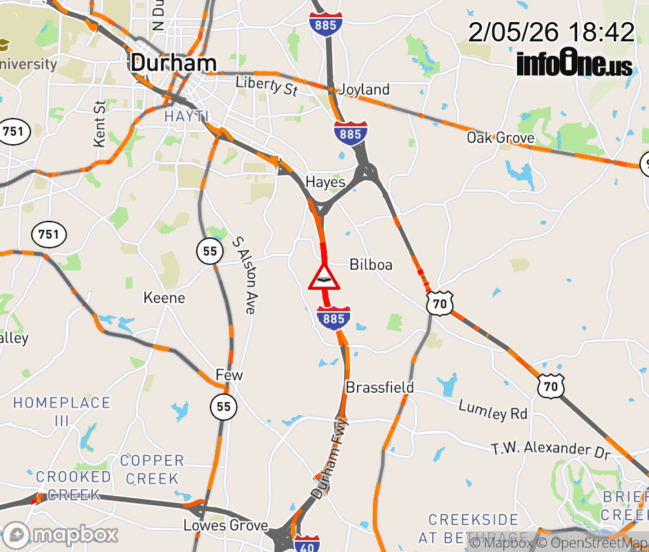 Canceled 2/5/26 7:20 PM Location: Durham Fwy (I-885S) at MM 9, NC Vehicle Crash.