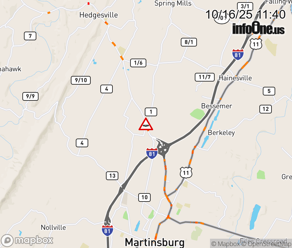 Vehicle Crash on WV-9 (Hedgesville Road at Harlan Springs Road). ![]() |