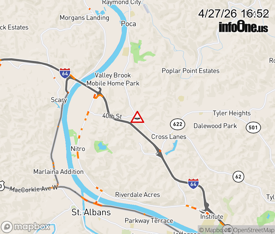 Vehicle Crash on WV-62 (Cross Lanes Dr) & Brookhaven Dr in Cross Lanes. ![]() |