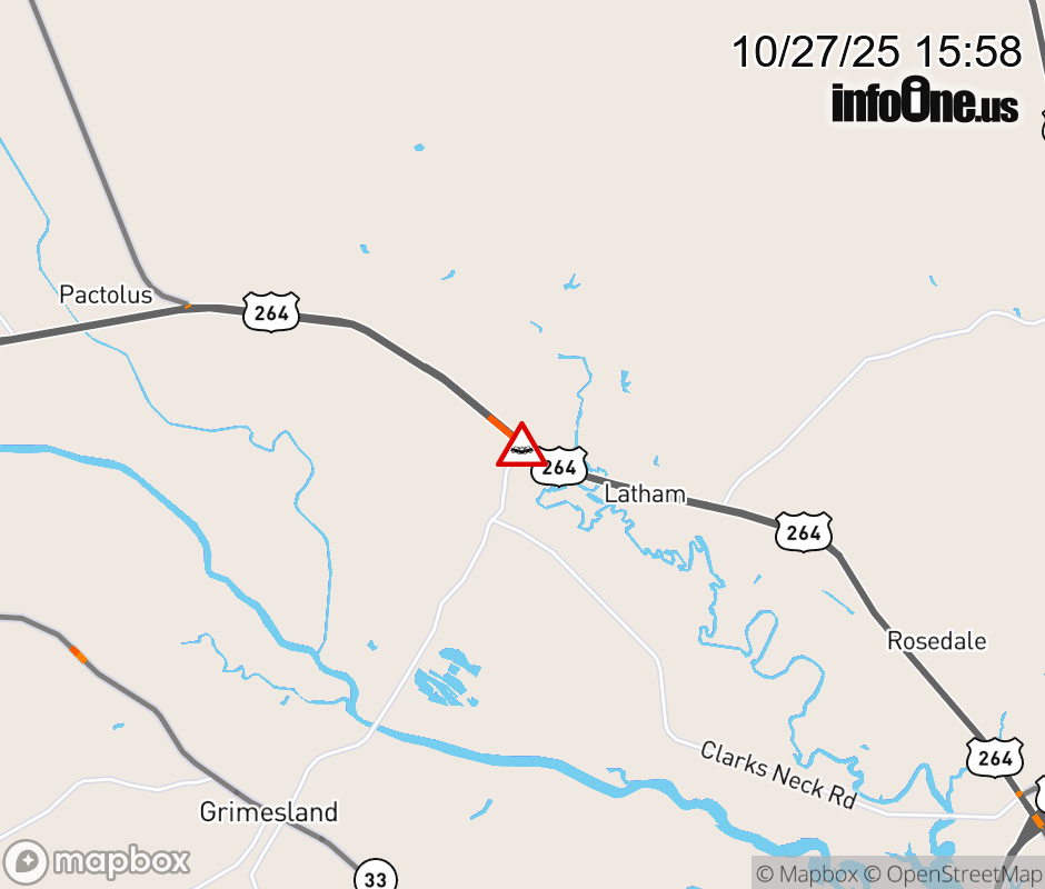 A lane is closed near N Grimesland Bridge Road. Updated: Mon 10/27/25 3:58 PM EDT ![]() Updated: Mon 10/27/25 3:58 PM EDT |