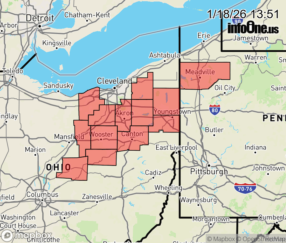 Canceled 1/18/26 9:06 PM Cold Weather Advisory issued January 18 at 1:50PM EST until January 20 at 12:00PM EST by NWS Cleveland OH * WHAT... Very cold wind chills as low as 15 degrees below zero expected. * WHERE... Portions of north central and northeast Ohio and northwest Pennsylvania. * WHEN... From 7 PM Monday to noon EST Tuesday. * IMPACTS... The cold wind chills as low as 15 degrees below zero could result in hypothermia if precautions are not taken. ![]() |