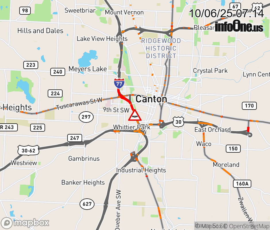 The right lane is blocked on I-77 South before I-77 South/US-62 West, due to a crash. Updated: Mon 10/6/25 7:14 AM EDT ![]() |