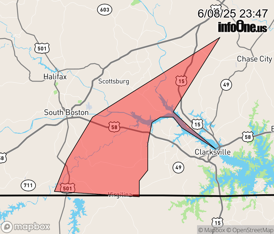 Canceled 6/8/25 11:58 PM Severe Thunderstorm Warning issued June 8 at 11:45PM EDT until June 9 at 12:00AM EDT by NWS Blacksburg VA At 1145 PM EDT, severe thunderstorms were located along a line extending from near Chase City to near Cluster Springs, moving east at 25 mph. HAZARD...60 mph wind gusts. SOURCE...Radar indicated. IMPACT...Expect damage to roofs, siding, and trees. Locations impacted include... Redoak... Hitesburg... Staunton River State Park... Dryburg... Virgilina... and John H Kerr Reservoir. ![]() |