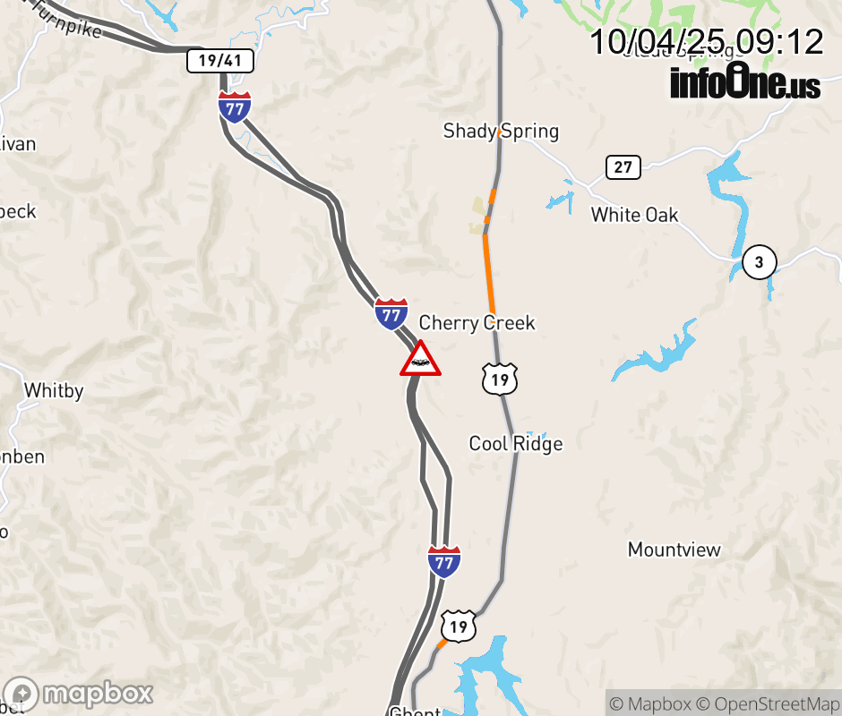 Canceled 10/4/25 10:14 AM Location: I-77 at MM 33.0, WV Accident.