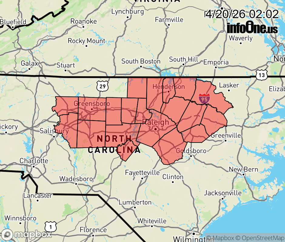 Frost Advisory issued April 20 at 2:01AM EDT until April 21 at 8:00AM EDT by NWS Raleigh NC * WHAT... Temperatures in the lower to middle 30s Tuesday morning will be supportive of frost formation. * WHERE... The northern Piedmont, northern Coastal Plain, and a portion of the northern Sandhills and central Coastal Plain of North Carolina. * WHEN... From 2 AM to 8 AM EDT Tuesday. * IMPACTS... Frost could harm or kill sensitive outdoor vegetation or plants if left uncovered. * ADDITIONAL DETAILS... Temperatures in urban areas will not be as cold, where frost will be less likely. ![]() |