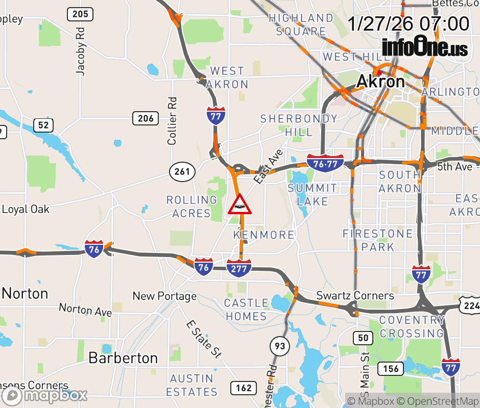 The 2 right lanes are blocked on I-76 East beyond Kenmore Blvd, due to a crash. Updated: Tue 1/27/26 7:00 AM EST ![]() Updated: Tue 1/27/26 7:00 AM EST |