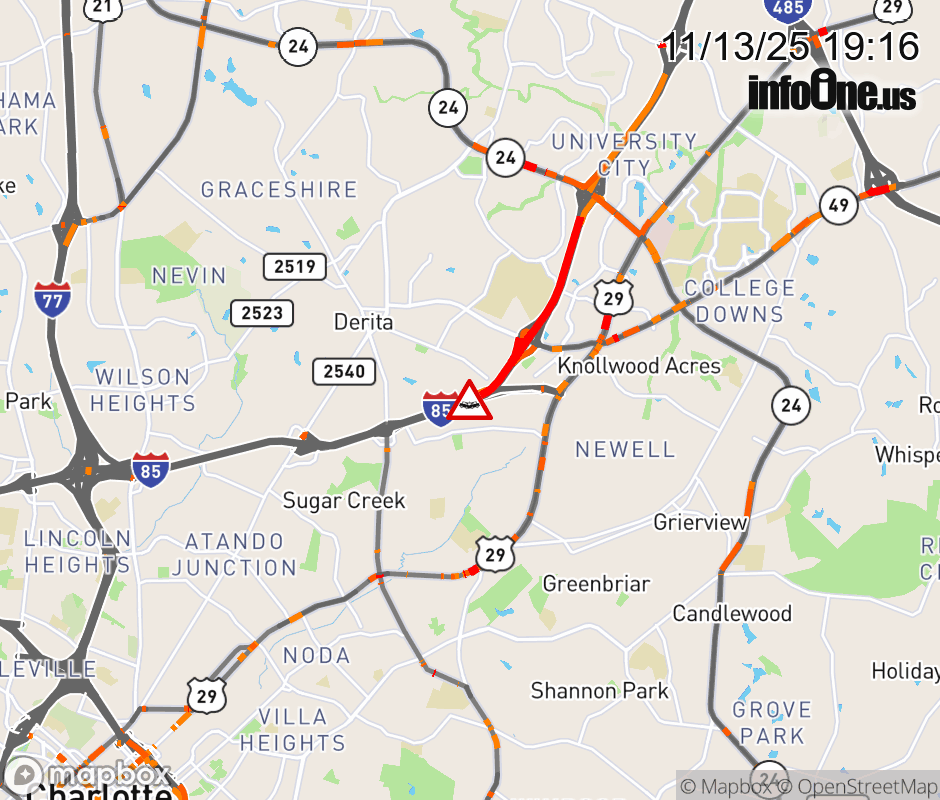 Canceled 11/13/25 7:18 PM Location: I-85S at MM 42, NC Vehicle Crash.