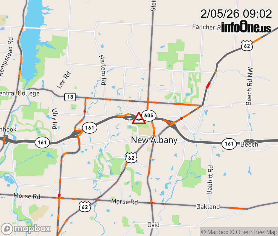 The right lane is blocked on SR-161 East beyond New Albany Rd, due to a crash. ![]() |