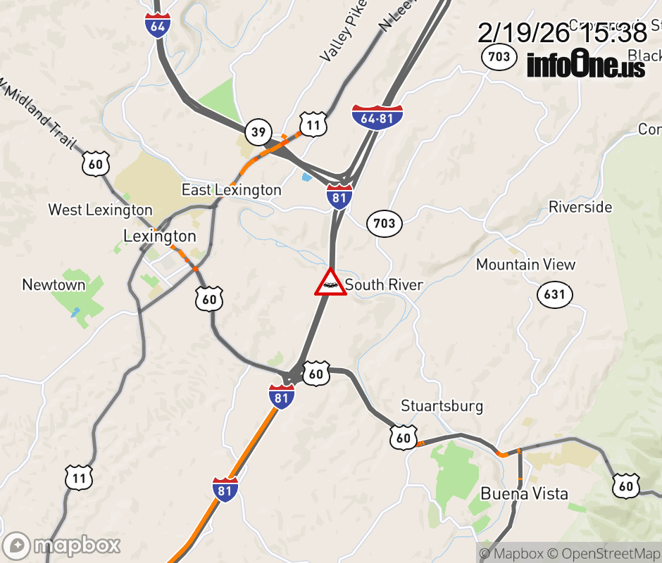 On I-81 at mile marker 190.1 in the County of Rockbridge, motorists can expect delays due to a vehicle crash. The north right shoulder is closed. ![]() |