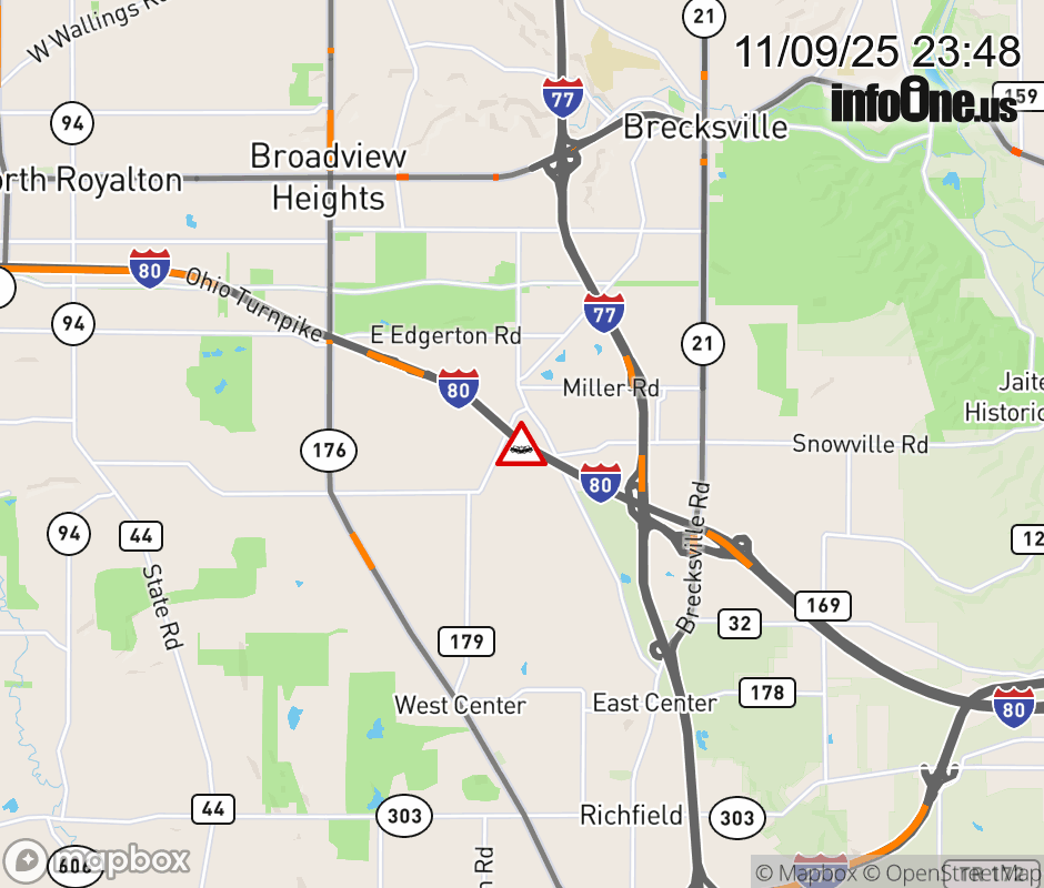 Expect lane closures on I-80 East (Ohio Turnpike) beyond I-71, due to a crash. Updated: Sun 11/9/25 11:48 PM EST ![]() Updated: Sun 11/9/25 11:48 PM EST |