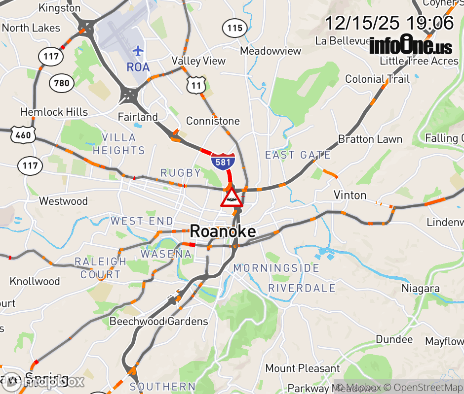 On I-581 at mile marker 1 in the County of Roanoke, motorists can expect delays due to a multi-vehicle crash. The south right shoulder and exit 4W are closed. Updated: Mon 12/15/25 7:06 PM EST ![]() Updated: Mon 12/15/25 7:06 PM EST |