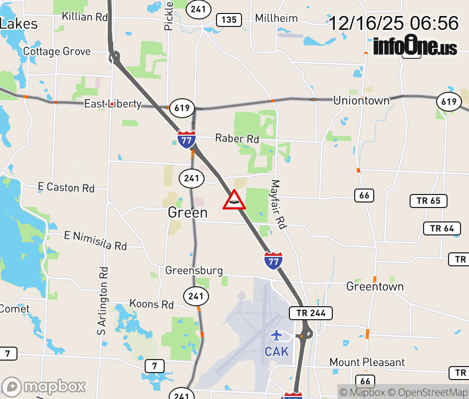 The right lane is blocked on I-77 North beyond Akron-Canton Airport, due to a crash. ![]() |