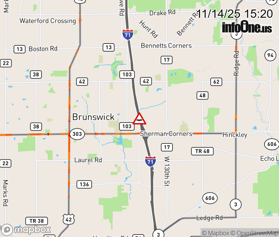 Expect lane closures on I-71 South beyond SR-82/Royalton Rd, due to a crash. Updated: Fri 11/14/25 3:20 PM EST ![]() |