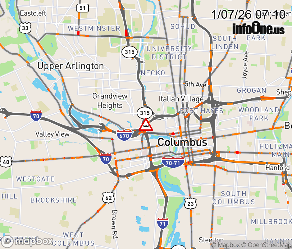 The right lane is blocked on I-670 East beyond SR-315 North, due to a crash. ![]() |