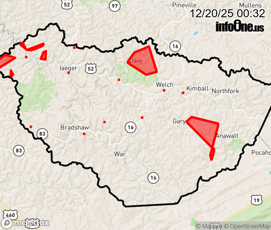 McDowell County has 18 power outages affecting 770 customers. Appalachian Power 770 without power Davy: Customers affected: 201 (66%) Estimated repair: Sat 11:00 PM Pageton: Customers affected: 182 (68%) Estimated repair: Sat 11:00 PM Mohawk: Customers affected: 116 (35%) Estimated repair: Sat 11:00 PM Thorpe: Customers affected: 80 (100%) Estimated repair: Sat 11:00 PM Panther: Customers affected: 77 (19%) Estimated repair: Sat 11:00 PM Welch: Customers affected: 52 (3%) Estimated repair: Sat 11:00 PM Gary: Customers affected: 28 (10%) Estimated repair: Sat 11:00 PM Isaban: Customers affected: 10 (8%) Estimated repair: Sat 11:00 PM Iaeger: Customers affected: 9 (1%) Estimated repair: Sat 11:00 PM Premier: Customers affected: 7 (3%) Estimated repair: Sat 11:00 PM Raysal: Customers affected: 6 (3%) Estimated repair: Sat 11:00 PM Bartley: Customers affected: 5 (3%) Estimated repair: Sat 11:00 PM An additional 3 communities have outages affecting 12 customers. Updated: Sat 12/20/25 12:32 AM EST ![]() Updated: Sat 12/20/25 12:32 AM EST |