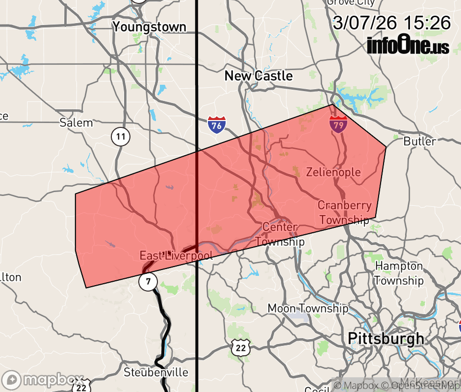 Canceled 3/7/26 3:46 PM Severe Thunderstorm Warning issued March 7 at 3:24PM EST until March 7 at 4:15PM EST by NWS Pittsburgh PA SVRPBZ The National Weather Service in Pittsburgh has issued a * Severe Thunderstorm Warning for... Southeastern Columbiana County in east central Ohio... North Central Jefferson OH County in east central Ohio... Southwestern Butler County in west central Pennsylvania... Beaver County in western Pennsylvania... Southeastern Lawrence County in western Pennsylvania... Hancock County in northern West Virginia... * Until 415 PM EST. * At 324 PM EST, a severe thunderstorm was located 8 miles south of Lisbon, or 7 miles northwest of Wellsville, moving northeast at 55 mph. HAZARD...60 mph wind gusts and small hail. SOURCE...Radar indicated. IMPACT...Expect damage to roofs, siding, and trees. * Locations impacted include... Cranberry, East Liverpool, Beaver Falls, Monaca, East Palestine, Wellsville, Ellwood City, New Brighton, Beaver, Calcutta, Zelienople, Rochester, Ohioville, Seven Fields, Lisbon, Midland, Chester, Industry and Evans City. ![]() |