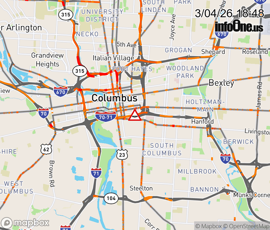 Ramp I-71 South to I-70 West/I-71 South CLOSED because of a crash. Updated: Wed 3/4/26 6:48 PM EST ![]() Updated: Wed 3/4/26 6:48 PM EST |