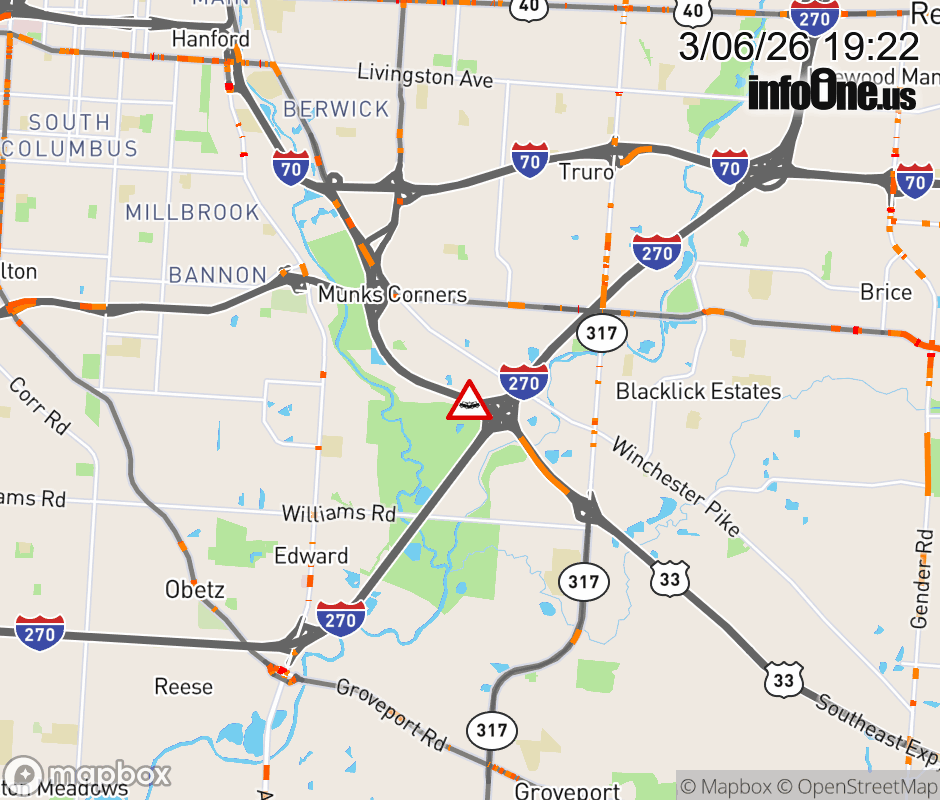 The left lane is blocked on US-33 West beyond I-270 South, due to a crash. ![]() |