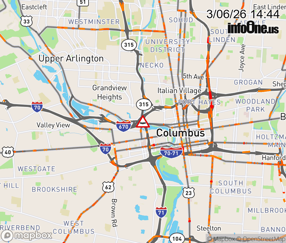 The right shoulder is blocked on SR-315 South beyond I-670 West, due to a crash. ![]() |