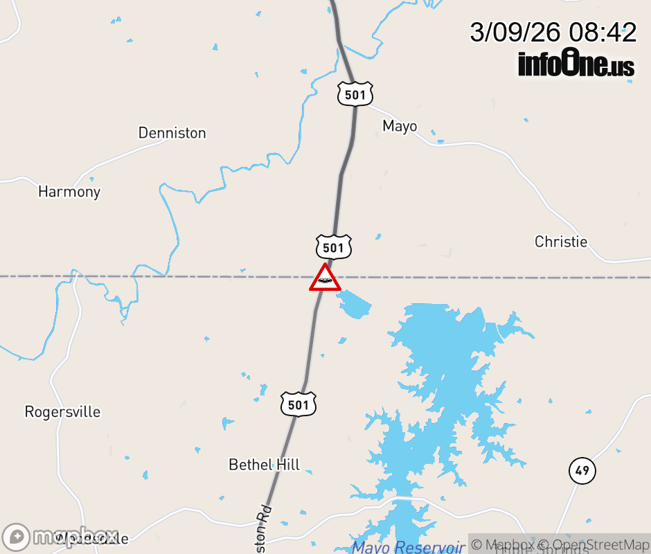 On US-501 North in the County of Campbell, in the vicinity of Alexander Ln; Browns Mill Rd; Rt. 686E/W (Campbell County), motorists can expect delays due to a vehicle crash. Lane closures exist. ![]() |