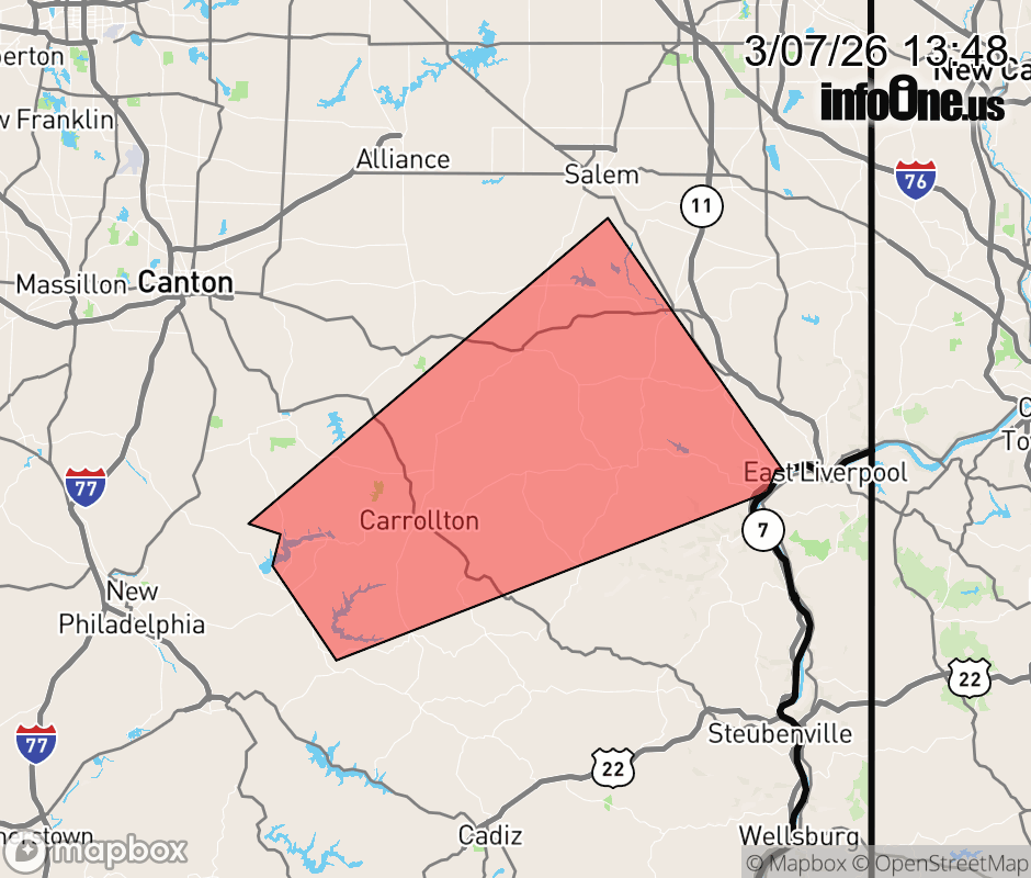 Canceled 3/7/26 1:59 PM Severe Thunderstorm Warning issued March 7 at 1:47PM EST until March 7 at 2:30PM EST by NWS Pittsburgh PA SVRPBZ The National Weather Service in Pittsburgh has issued a * Severe Thunderstorm Warning for... Carroll County in east central Ohio... Western Columbiana County in east central Ohio... Northwestern Jefferson OH County in east central Ohio... * Until 230 PM EST. * At 147 PM EST, a severe thunderstorm was located 6 miles southwest of Carrollton, moving northeast at 40 mph. HAZARD...60 mph wind gusts and quarter size hail. SOURCE...Radar indicated. IMPACT...Hail damage to vehicles is expected. Expect wind damage to roofs, siding, and trees. * Locations impacted include... Wellsville, Carrollton, Lisbon, Augusta, Salineville, Hanoverton, Irondale, Dellroy, Summitville, Mechanicstown, Harlem Springs, New Garden, Guilford Lake State Park, Winona, Leesville Lake Park and Atwood Lake. ![]() |