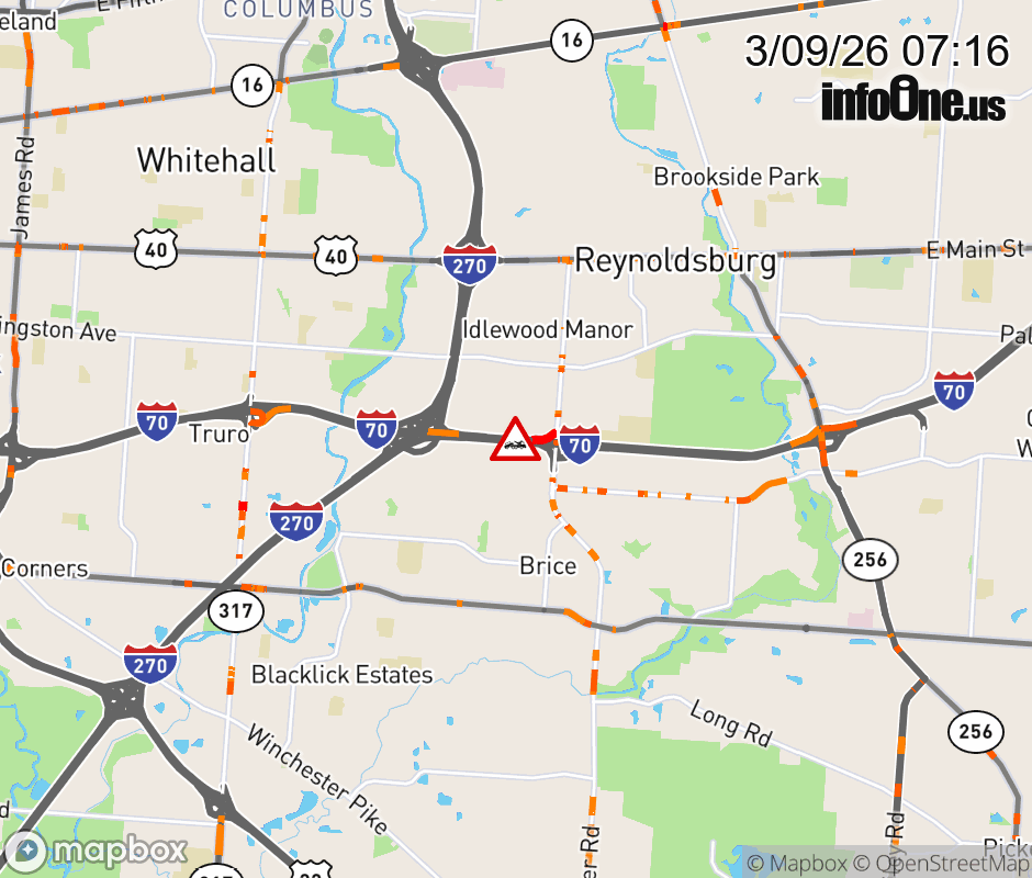 The right lane is blocked on I-70 West beyond Brice Rd, due to a disabled vehicle. ![]() |
