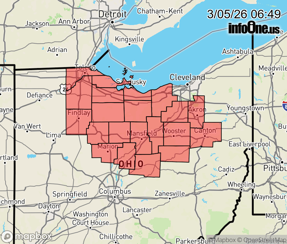 Canceled 3/5/26 9:54 AM Dense Fog Advisory issued March 5 at 6:48AM EST until March 5 at 10:00AM EST by NWS Cleveland OH * WHAT... Visibility one quarter mile or less in dense fog. * WHERE... Portions of north central, northeast, and northwest Ohio. * WHEN... Until 10 AM EST this morning. * IMPACTS... Low visibility could make driving conditions hazardous. ![]() |