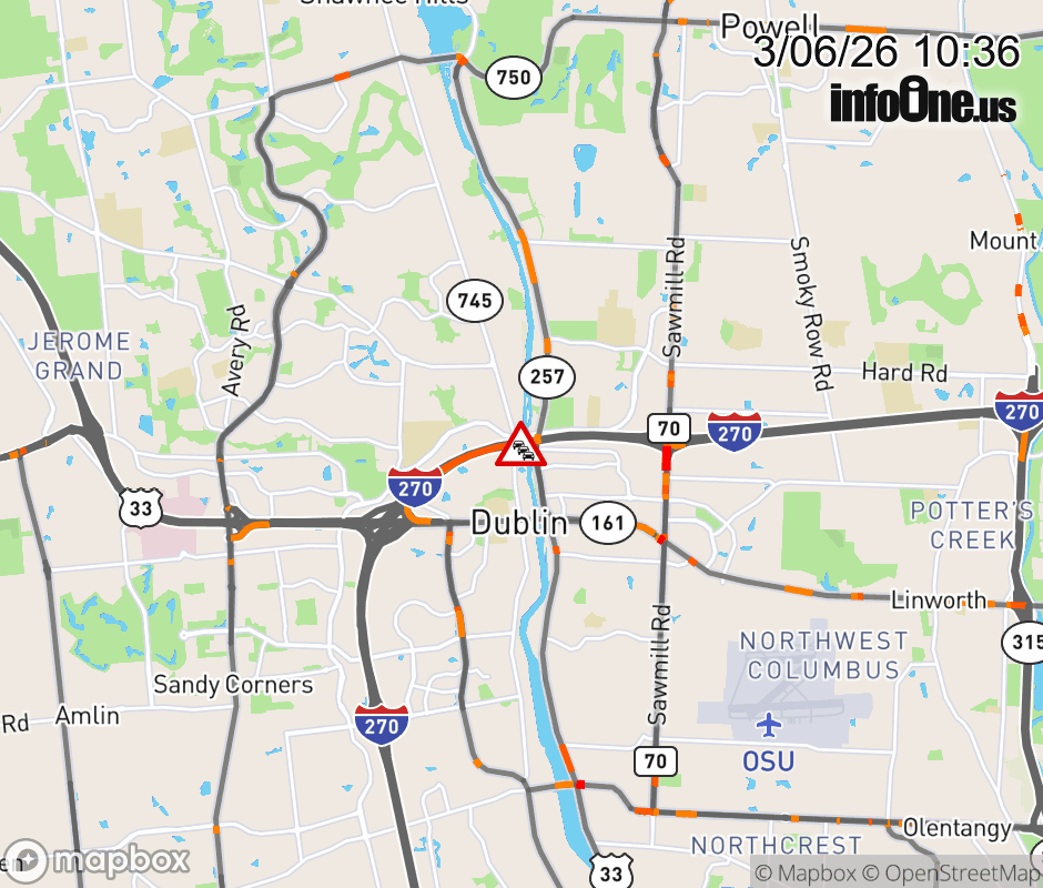 The 2 right lanes are blocked on I-270 East beyond US-33/SR-161, due to repairs/maintenance. ![]() |