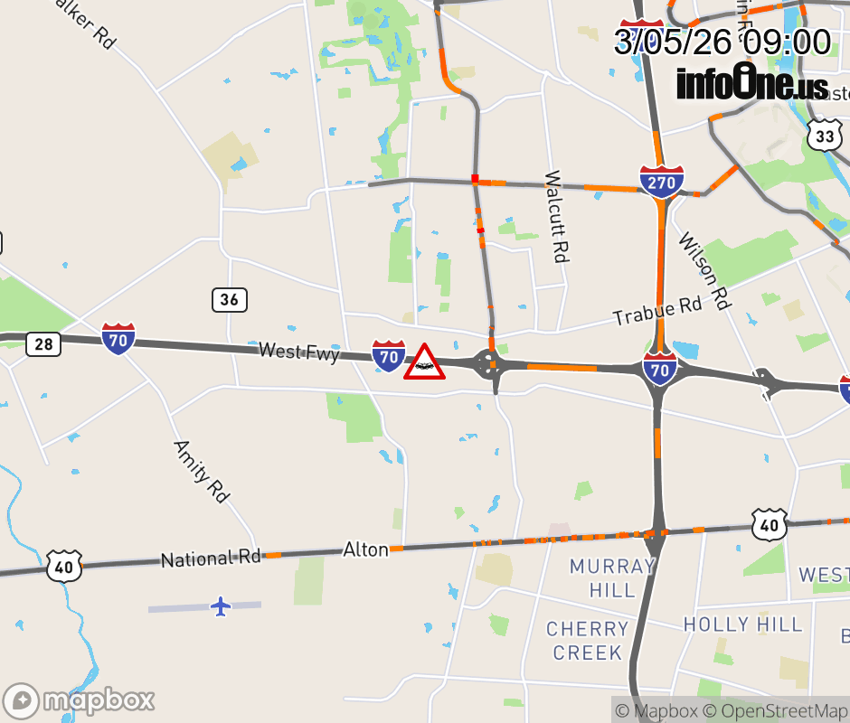 The left lane is blocked on I-70 East beyond SR-142/Plain City all lanes are closed on I-70 West beyond Hilliard-Rome Rd South, due to a crash. ![]() |