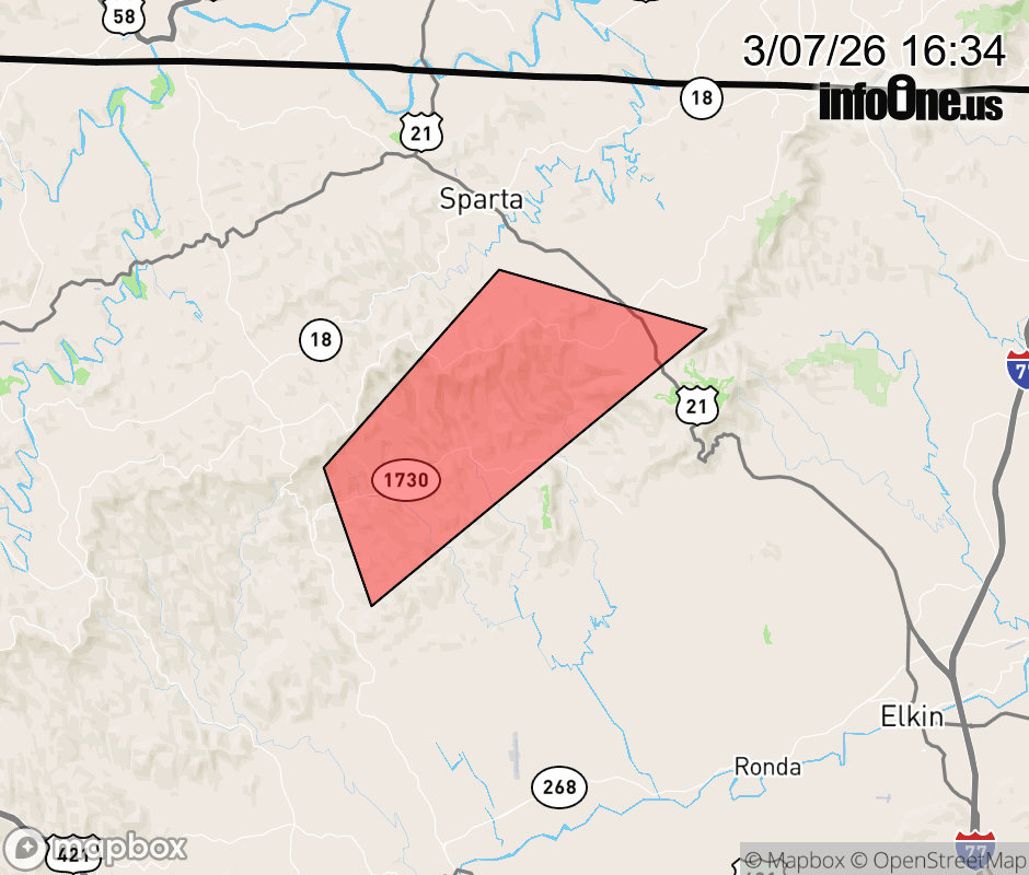 Canceled 3/7/26 4:45 PM Special Weather Statement issued March 7 at 4:32PM EST by NWS Blacksburg VA At 431 PM EST, Doppler radar was tracking a strong thunderstorm over Abshers, or near Traphill, moving northeast at 10 mph. HAZARD...Wind gusts up to 50 mph, pea size hail and localize minor flooding is possible. SOURCE...Radar indicated. IMPACT...Gusty winds could knock down tree limbs and blow around unsecured objects. Locations impacted include... Stone Mountain State Park... Abshers... and Doughton Park. ![]() |