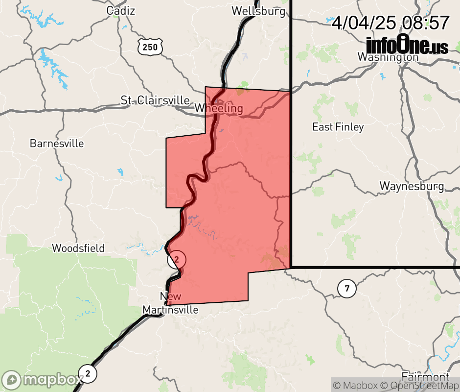 Canceled 4/4/25 10:23 AM Flood Warning issued April 4 at 8:56AM EDT until April 4 at 10:30AM EDT by NWS Pittsburgh PA * WHAT... Flooding caused by excessive rainfall continues. * WHERE... Portions of east central Ohio, including the following county, southeastern Belmont and West Virginia, including the following counties, Marshall, Ohio and northwestern Wetzel. * WHEN... Until 1030 AM EDT. * IMPACTS... Flooding of rivers, creeks, streams, and other low-lying and flood-prone locations is imminent or occurring. * ADDITIONAL DETAILS... - At 855 AM EDT, flooding of small streams and roads continues. Between 1 and 1.5 inches of rain have fallen. - Some locations that will experience flooding include... Wheeling, Moundsville, Martins Ferry, New Martinsville, Bellaire, Bethlehem, Triadelphia, Valley Grove, Shadyside, McMechen, Powhatan Point, Glen Dale, Cameron, Bridgeport, Benwood, Brookside, Clarington, Grove Oak, Glen Easton and Grand Vue Park. - http://www.weather.gov/safety/flood ![]() |