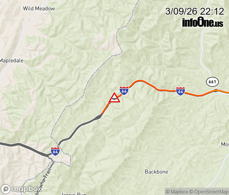 On I-64 at mile marker 2.9 in the County of Alleghany, motorists can expect delays due to a vehicle crash. The west right shoulder is closed. Updated: Mon 3/9/26 10:12 PM EDT ![]() Updated: Mon 3/9/26 10:12 PM EDT |