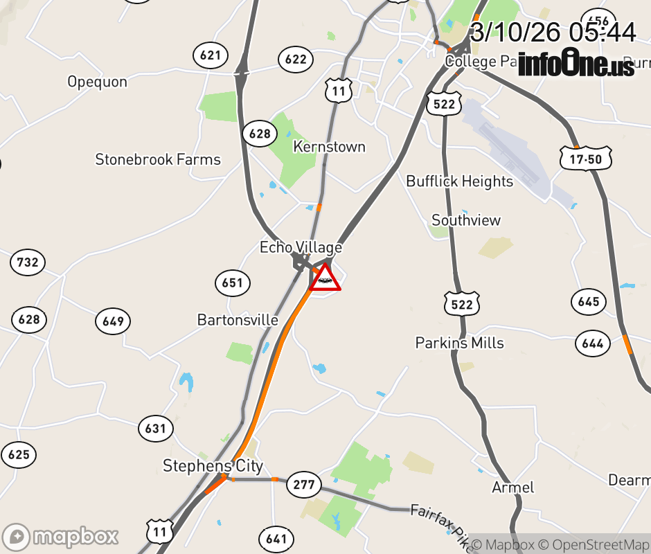 On VA-37 in the County of Frederick, in the vicinity of Tasker Rd; Rt. 642N/S (Frederick County), motorists can expect delays due to a tractor trailer crash. All north lanes are closed. All south lanes are closed. Updated: Tue 3/10/26 5:44 AM EDT ![]() Updated: Tue 3/10/26 5:44 AM EDT |