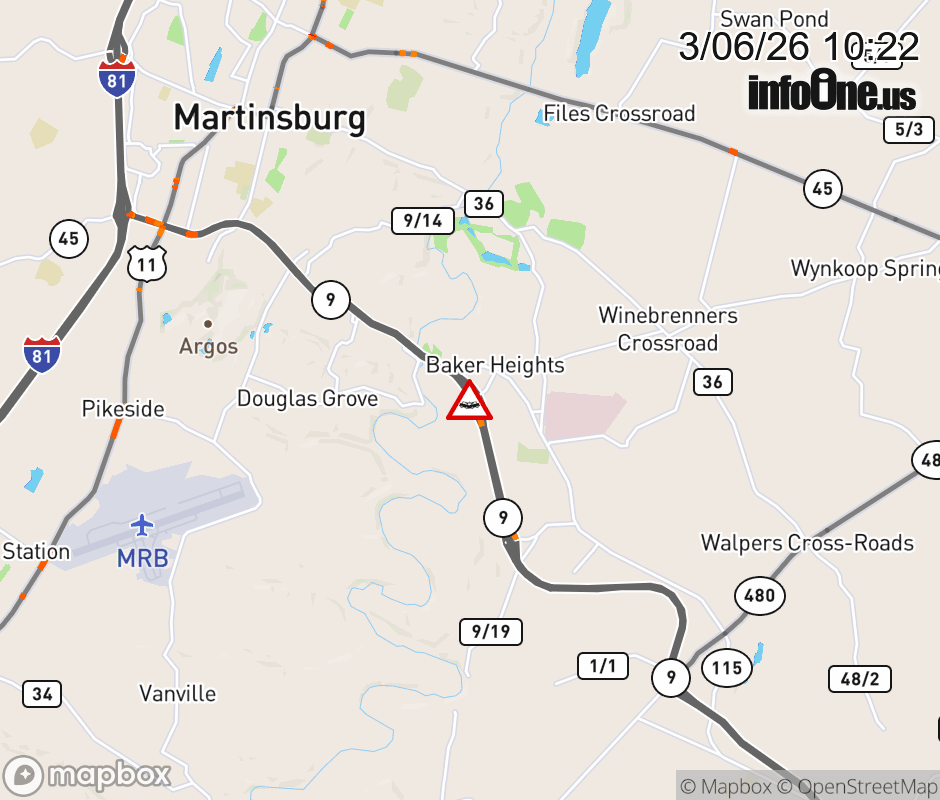Vehicle Crash on WV-9 & WV-115 (Opequon Connector) in Baker Heights. ![]() |