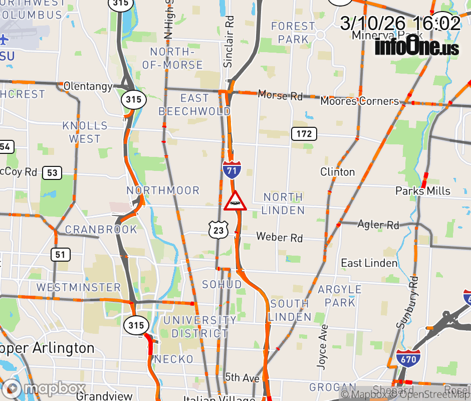 The right shoulder is blocked on I-71 South at North Broadway, due to a crash. ![]() |
