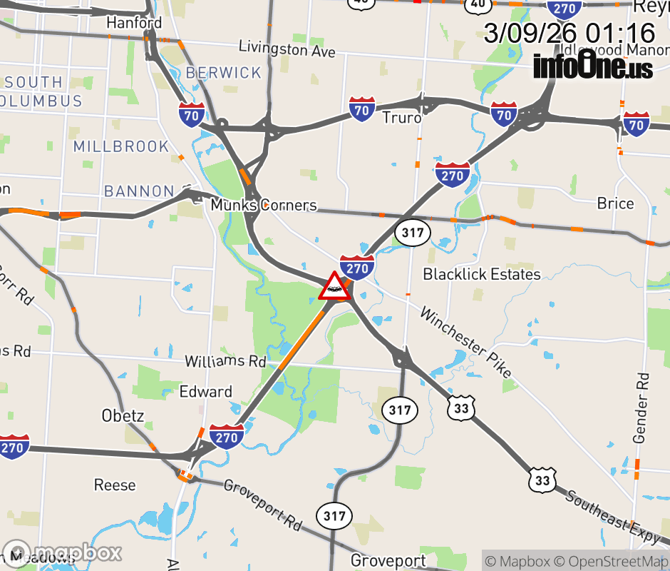 Ramp US-33 West to I-270 South CLOSED because of a crash. ![]() |