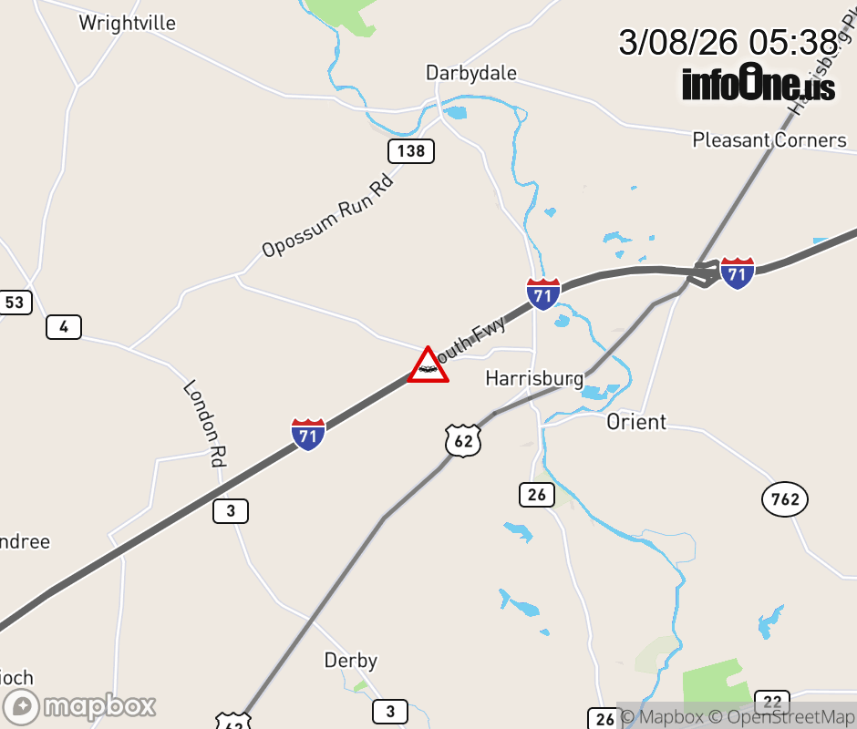 Expect lane closures on I-71 South beyond US-62/SR-3, due to a crash. ![]() |