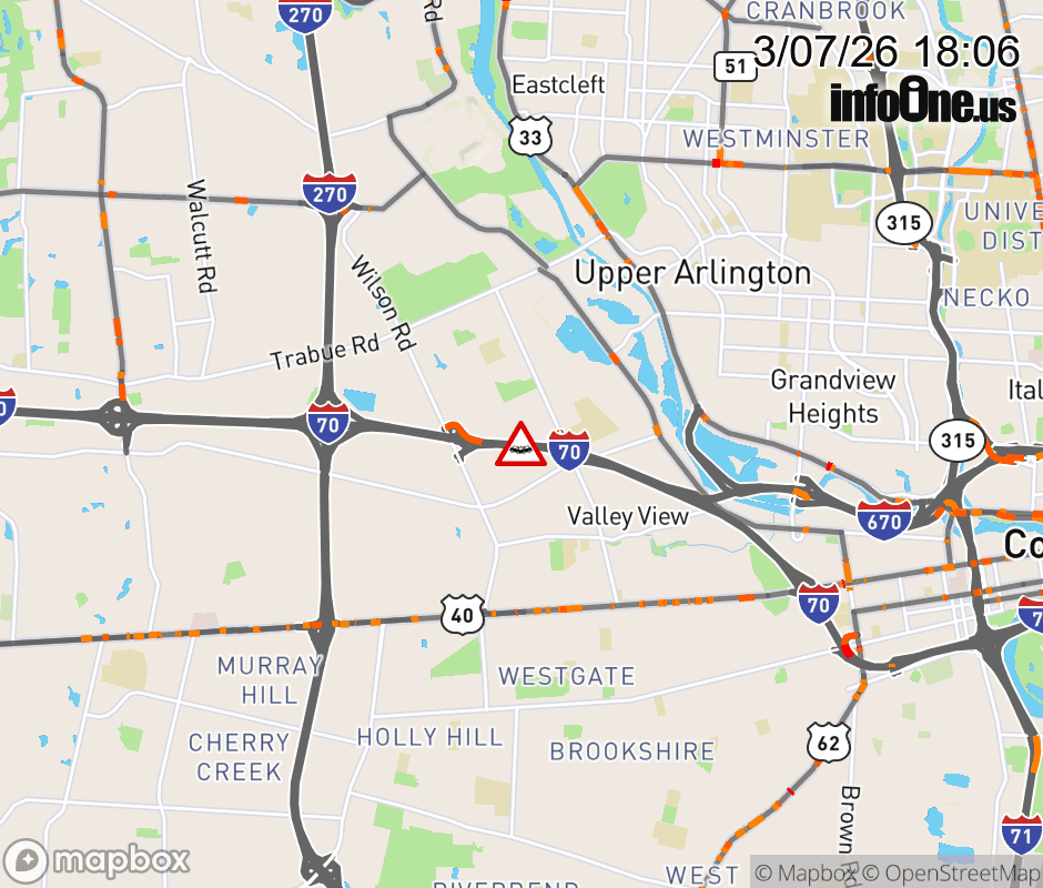 The left lane is blocked on I-70 West beyond Hague Ave, due to a crash. ![]() |