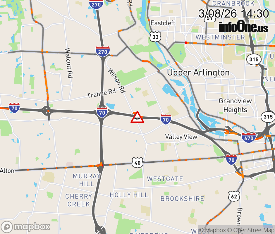The 2 left lanes are blocked on I-70 East at Wilson Rd, due to a crash. ![]() |