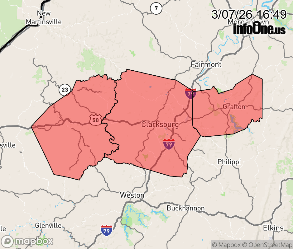 Canceled 3/7/26 5:13 PM Tornado Watch issued March 7 at 4:48PM EST until March 7 at 8:00PM EST by NWS Charleston WV TORNADO WATCH 25 REMAINS VALID UNTIL 8 PM EST THIS EVENING FOR THE FOLLOWING AREAS IN WEST VIRGINIA THIS WATCH INCLUDES 3 COUNTIES IN CENTRAL WEST VIRGINIA TAYLOR IN NORTHERN WEST VIRGINIA DODDRIDGE HARRISON THIS INCLUDES THE CITIES OF BRIDGEPORT, CLARKSBURG, GRAFTON, AND WEST UNION. ![]() |