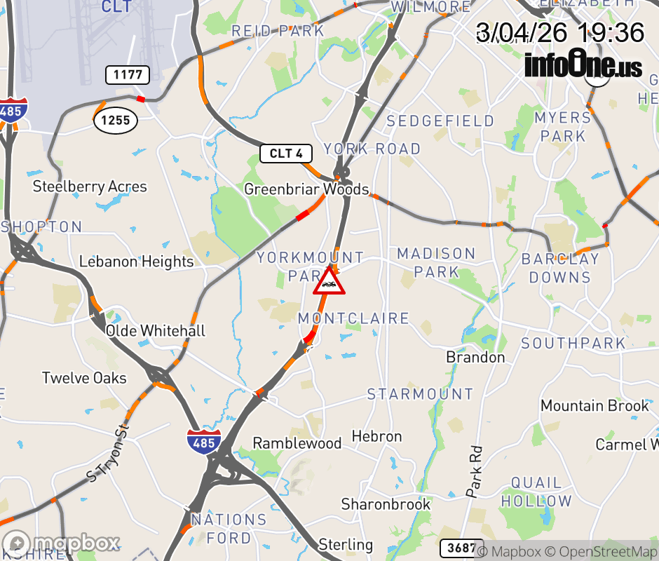 The right shoulder is closed at Exit 5(Tyvola Rd.). Updated: Wed 3/4/26 7:36 PM EST ![]() Updated: Wed 3/4/26 7:36 PM EST |