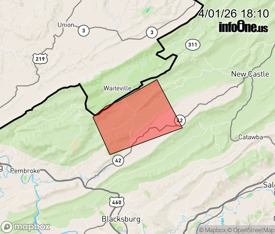 Canceled 4/1/26 6:45 PM Special Weather Statement issued April 1 at 6:09PM EDT by NWS Blacksburg VA At 609 PM EDT, Doppler radar was tracking a strong thunderstorm over Maggie, or 7 miles west of Sinking Creek, moving east at 15 mph. HAZARD...Wind gusts up to 40 mph and pea size hail. SOURCE...Radar indicated. IMPACT...Gusty winds could knock down tree limbs and blow around unsecured objects. Locations impacted include... Sinking Creek... Maggie... and Simmonsville. ![]() |