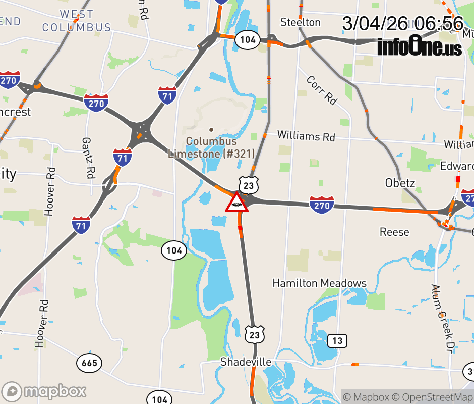 Expect lane closures on Ramp I-270 East to US-23 South (Southside), due to a crash. ![]() |